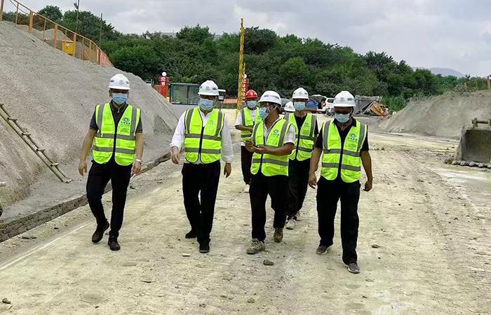 10月2日,公司黨委書記、副董事長(zhǎng)蔣璽到五〇二直管項(xiàng)目部開遠(yuǎn)市小龍?zhí)赌隙礈细囊乒こ處О鄼z查。