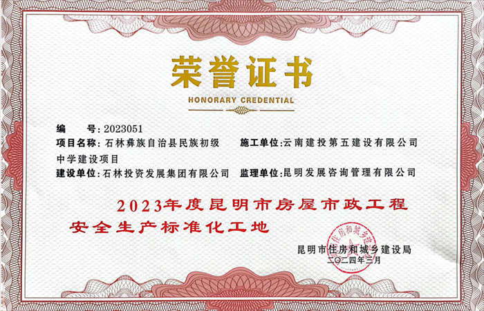 技術(shù)支持: 方森科技近日,由五〇二直管項目部負責施工的石林彝族自治縣民族初級中學建設(shè)項目獲評“昆明市2023年建筑企業(yè)目標考核優(yōu)良單位”、“2023年昆明市房屋市政工程質(zhì)量標準化示范項目”、“2023年昆明市房屋市政工程安全生產(chǎn)標準化工地”等榮譽。